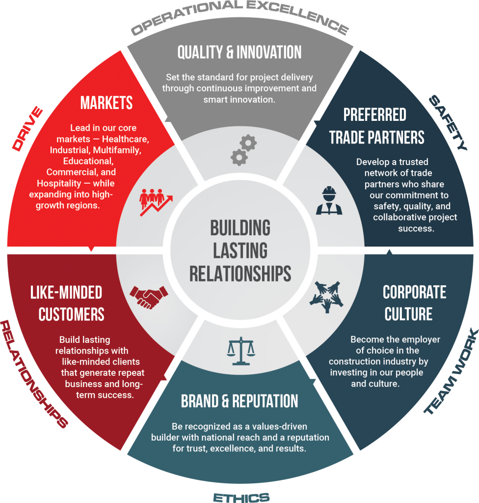 Supporting it all are our Core Values — Drive, Operational Excellence, Safety, Teamwork, Ethics, and Relationships — which define how we work, how we lead, and how we hold ourselves accountable.